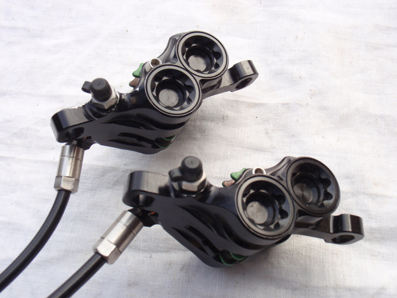 <p>Prodám jeté 4 pístkové brzdy Shimano Saint BR-M820. Sada obsahuje přední+zadní brzdu, kotouče Shimano SM-RT76-L 203mm a veškeré šrouby. Přední…