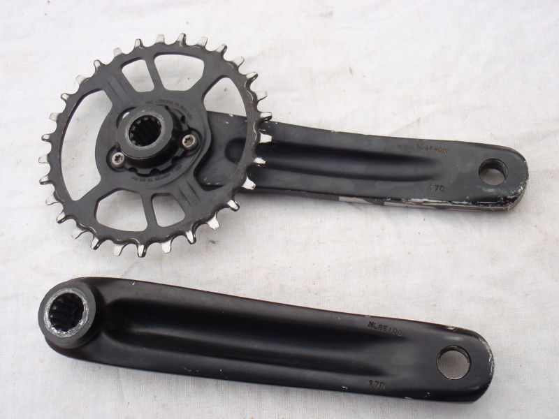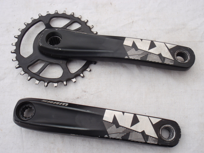 <p>Prodám jeté kliky SRAM NX. Délka: 170mm, převodník 30z. pro 11speed řetěz, offset 3mm. Kliky jsou na středovou osu s tisícihranem. Pravá klika ok,…