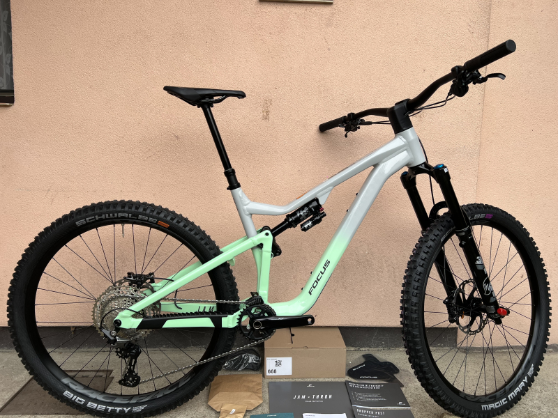 Prodám nové enduro kolo Focus Jam 6.9. Model: 2025. Velikost kol: 29''. Kolo mám skladem ve velikostech: M, L, XL. Kolo je úplně nové/nepoužité, pouze vybalené z krabice. Záruka 2 roky. Nejvyšší model. Ke kolu je veškeré příslušenství (taštička na rám, blatníček, ochranné polepy na rám, sada odrazek a manuály). Katalogová cena: 87 000kč. Cena: 46990kč