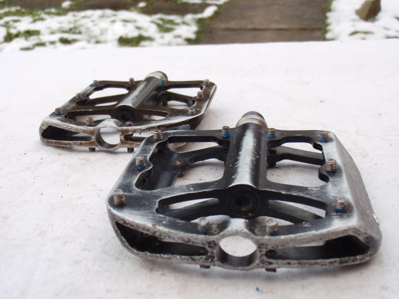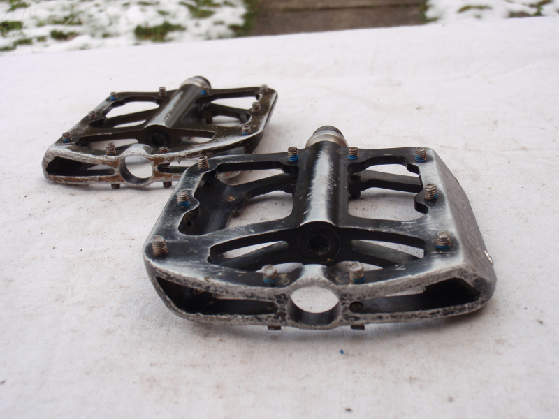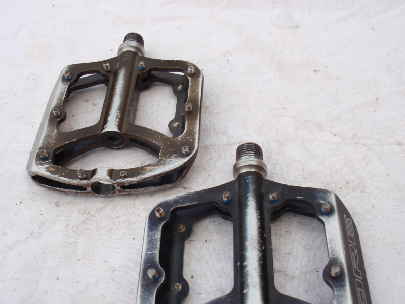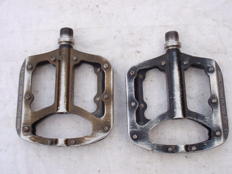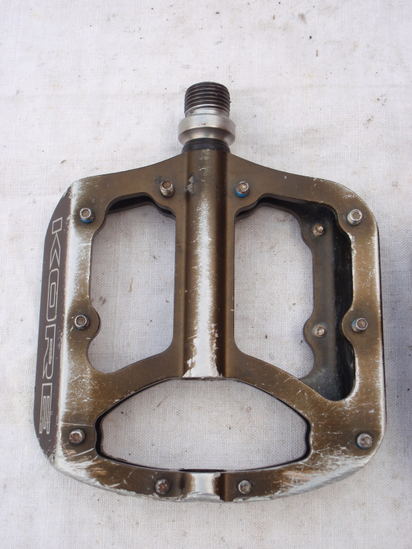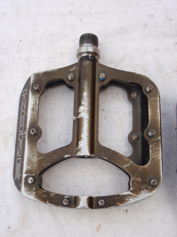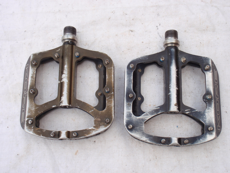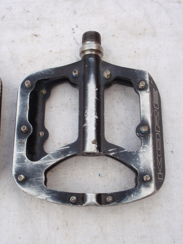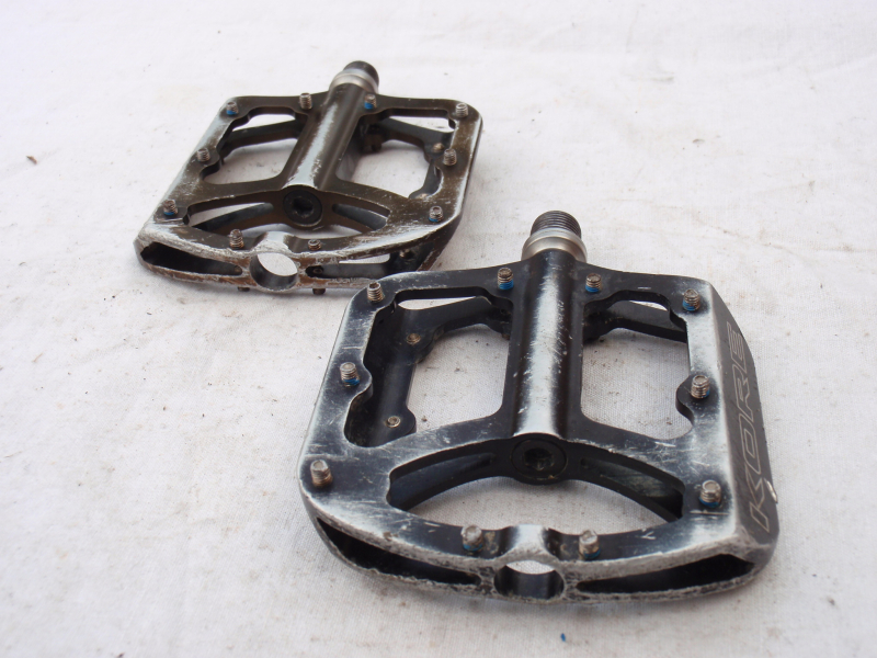Prodám jeté pedály Kore Jive. Pedály se otáčejí dobře a vůli nemají, jen je na ložiskách dle zvuku znát, že mají již nějaké to opotřebení. Každý pedál má jinou barvu - jeden je černý, druhý béžový - viz. foto. Pedály mají běžné provozní oděrky. Katalogová cena: 3500kč. Cena: 690kč