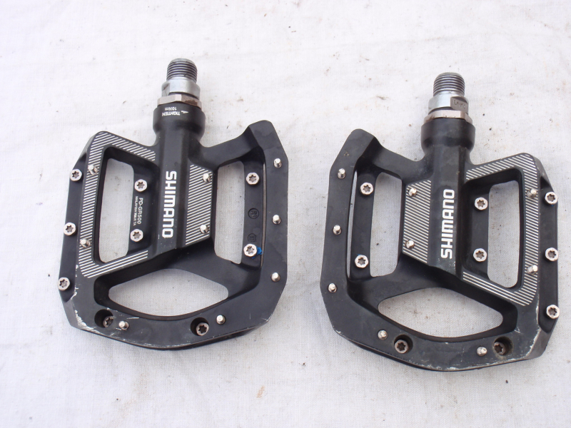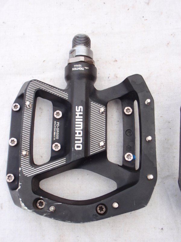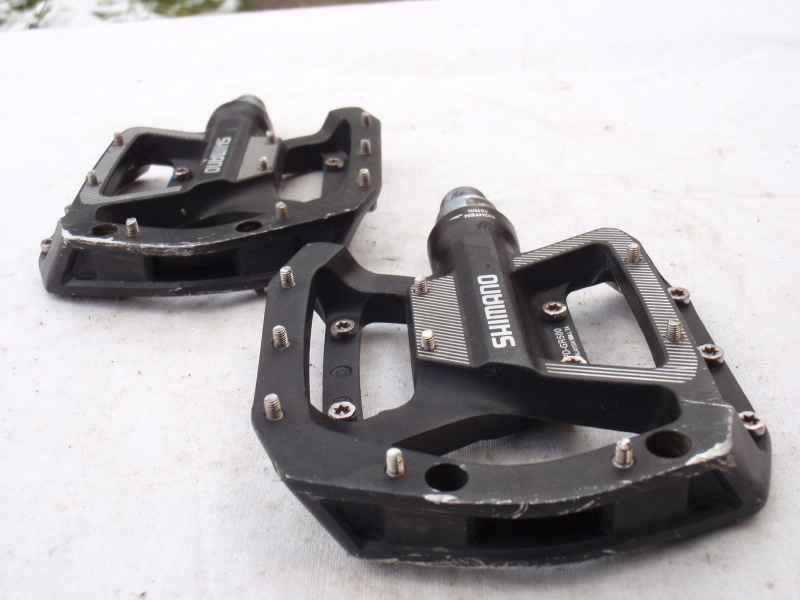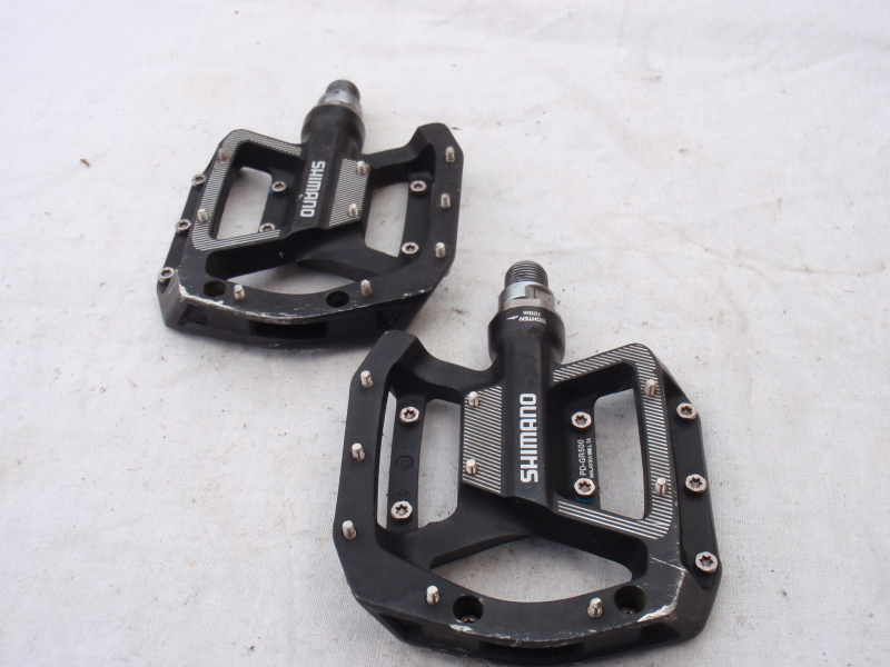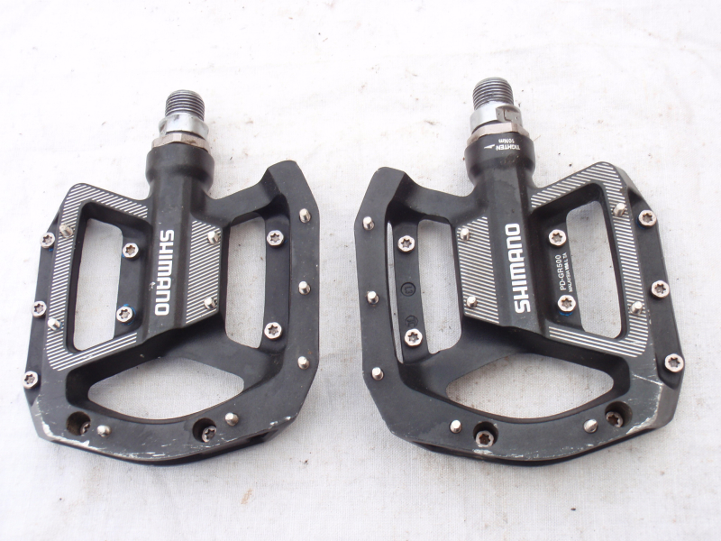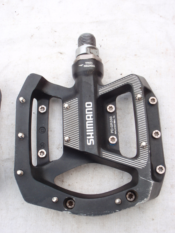 Prodám jeté pedály Shimano PD-GR500. Pedály nebyly nějak moc ježděné a jsou v dobrém stavu. Ložiska pedálů se otáčejí dobře, jen mají malou ,,provozní" vůli (u těchto pedálů je to naprosto běžná provozní věc). Pedály mají pár běžných provozních oděrek - viz. foto. Cena: 890kč