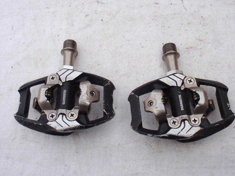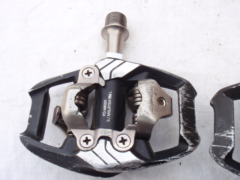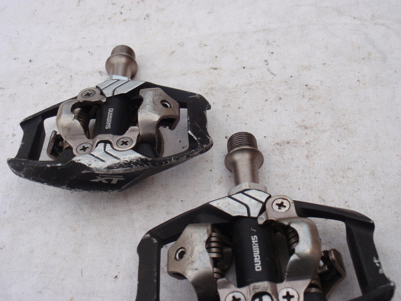 Prodám jeté pedály Shimano XT PD-M8020. Ložiska pedálů se točí hezky hladce, pravý i levý pedál mí malinkatou téměř neznatelnou ,,provozní" mikro vůli. Pedály mají běžné provozní oděrky - viz. foto. Katalogová cena: 2290kč. Cena: 990kč