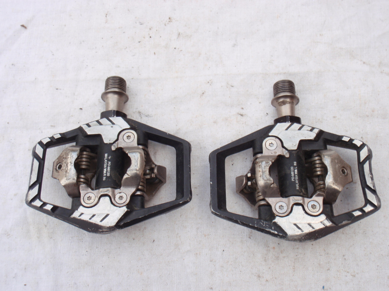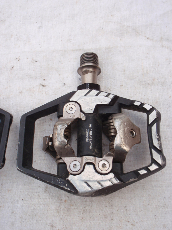 Prodám jeté pedály Shimano XT PD-M8120. Na ložiskách pedálů je znát že mají již nějaké to opotřebení pořád se ale otáčejí slušně a vůli nemají. Pedály mají běžné provozní oděrky a známky užívání - viz. foto. Katalogová cena: 3499kč. Cena: 1290kč