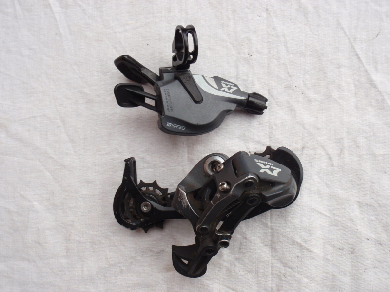 Prodám jetou přehazovačku+řazení Sram X7. Přehazovačka Sram X7, dlouhé ramínko, 9 rychlostí. Přehazovačka je ježděná, takže má již samozřejmě nějakou tu běžnou provozní vůli (zohledněno v ceně). Spodní kladka je již opotřebenější+v jednom místě prasklá, pořád ale i tak plní funkci jak má. Cena: 790kč