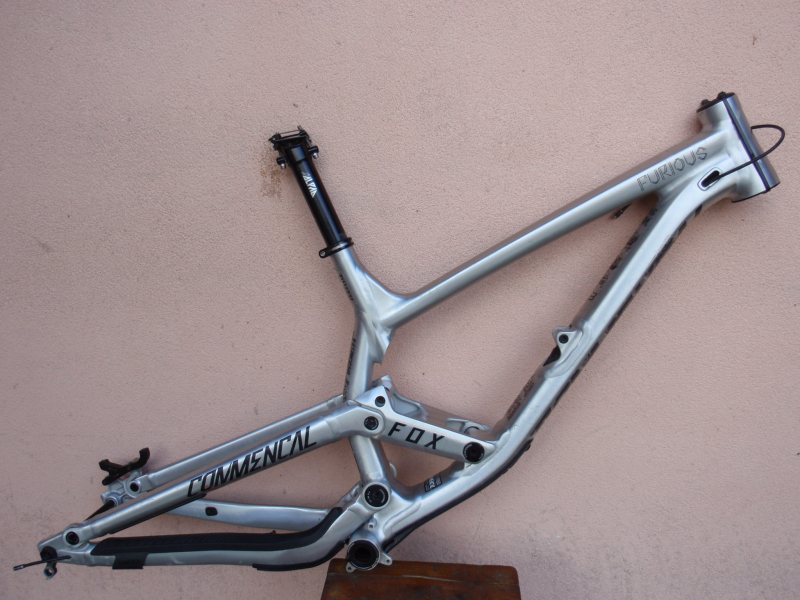 Prodám jetý rám Commencal Furious Race. Velikost: L, na 27,5" výplet. Bez tlumiče - do rámu patří tlumič o délce 250x75mm. Hlavové složení: 1.1/8 (lze ale případně předělat i na taperred). Domek pressfit o šířce 107mm. Zadní stavba na náboj 12x150mm. K rámu dávám hlavové složení (ložiska se otáčejí hezky hladce), zadní osu 12x150mm, sedlovku New Ride Alpha, středovou pressfit osu s ložisky (ložiska jsou již opotřebenější a mají vůli) a zadní redukci pro 203mm kotouč. Rám má vnitřní vedení bowdenů a hadic. Na rámu jsou designové polepy, ložiska rámu chodí hezky hladce. U horní části hlavového složení se z vrchní strany objevila vlásečnice + další 4 vlásečnice jsou na vnitřní straně části, která spojuje levou a pravou část zadní stavby. Díky těmto zmíněným nedostatkům nabízím rám za nízkou cenu. Cena: 3990kč
