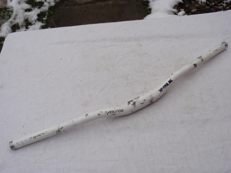 Prodám jeté řidítka Syncros Bulk. Délka: 700mm, průměr: 31,8mm, průhyb: 20mm. Řidítka jsou oprýskané jelikož se jim loupe lak. Díky tomuto nedostatku nabízím řidítka za nízkou cenu. Cena: 190kč