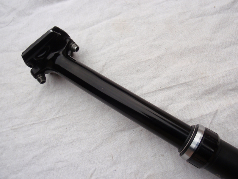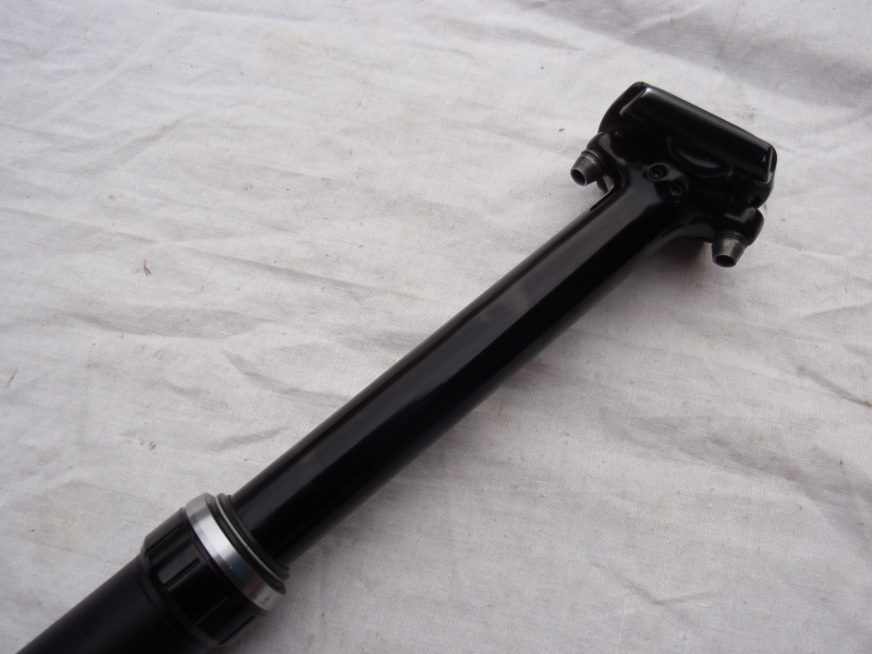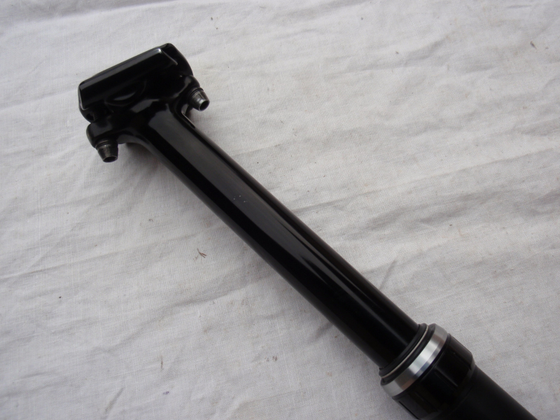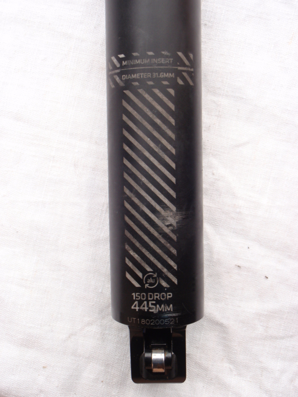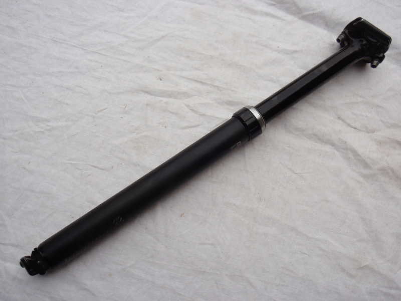 Prodám jetou teleskopickou sedlovku Bontager Drop Line. Průměr: 31,6mm. Zdvih: 150mm. Celková délka: 445mm. Vnitřní vedení. Bez ovládací páčky. Sedlovka nebyla moc jetá - celkově má najeto jen pouze cca 2000km. Sedlovka je jako taková funkční, jen se sama nevysune až nahoru - vysune se sama jen pouze cca 5,5cm, poté je nutné zbytek vysunout rukou. Takže buď na opravu (stačí vyměnit patronu a bude opět fungovat na 100%), náhradní díly, nebo možno používat stím, že ji člověk bude muset pomáhat. Díky zmíněnému nedostatku nabízím sedlovku za nízkou cenu. Nabízím pouze samostatnou sedlovku bez ovládací páčky, tak jak ji vidíte na foto. Na pístnici sedlovky jsou 3 malé povrchové oděrky. Katalogová cena sedlovky: 7499kč. Cena: 990kč.