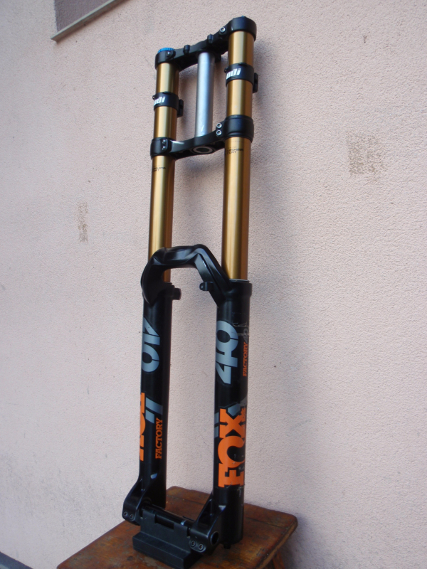 Prodám jetou vidlici Fox 40 Float Factory Series Kashima Air. Zdvih: 200mm, pevná osa: 20x110mm, krk: 1.1/8". Vidlice je na 27,5" výplet a je plně funkční. Na kluzácích vidlice jsou 2 malé povrchové oděrky (jedna na levém a jedna na pravém kluzáku) - obě oděrky jsou ale až v 3/3 zdvihu a jsou pouze povrchové, takže na funkčnost vidlice nemají žádný vliv. Osa vidlice se místo imbusu povoluje a dotahuje matkou, která je šroubem připevněna k ose vidlice - po technické stránce to funguje a plní účel naprosto stejně jak původní imbus. Katalogová cena současného modelu: 61 190kč. Cena: 17990kč